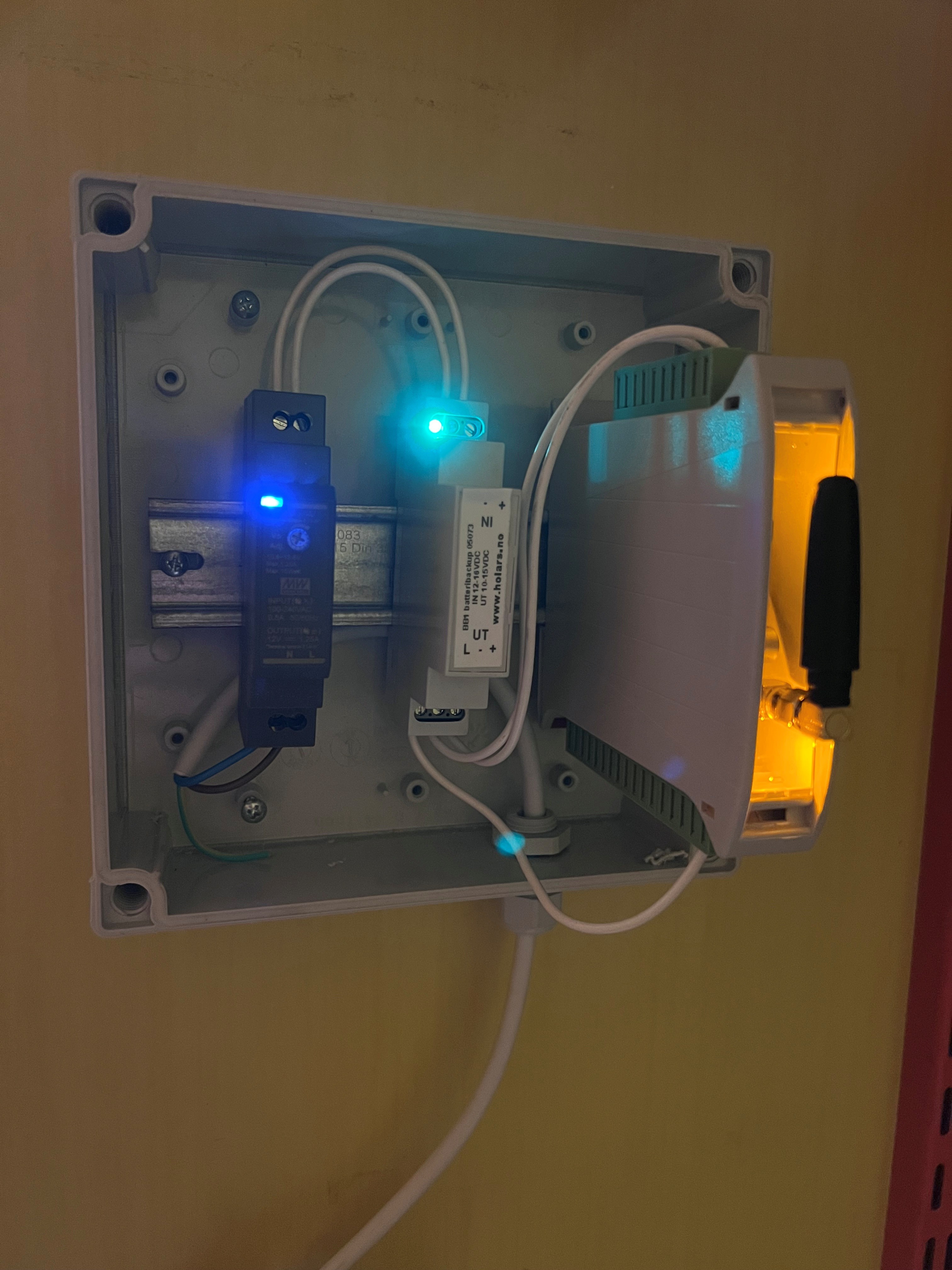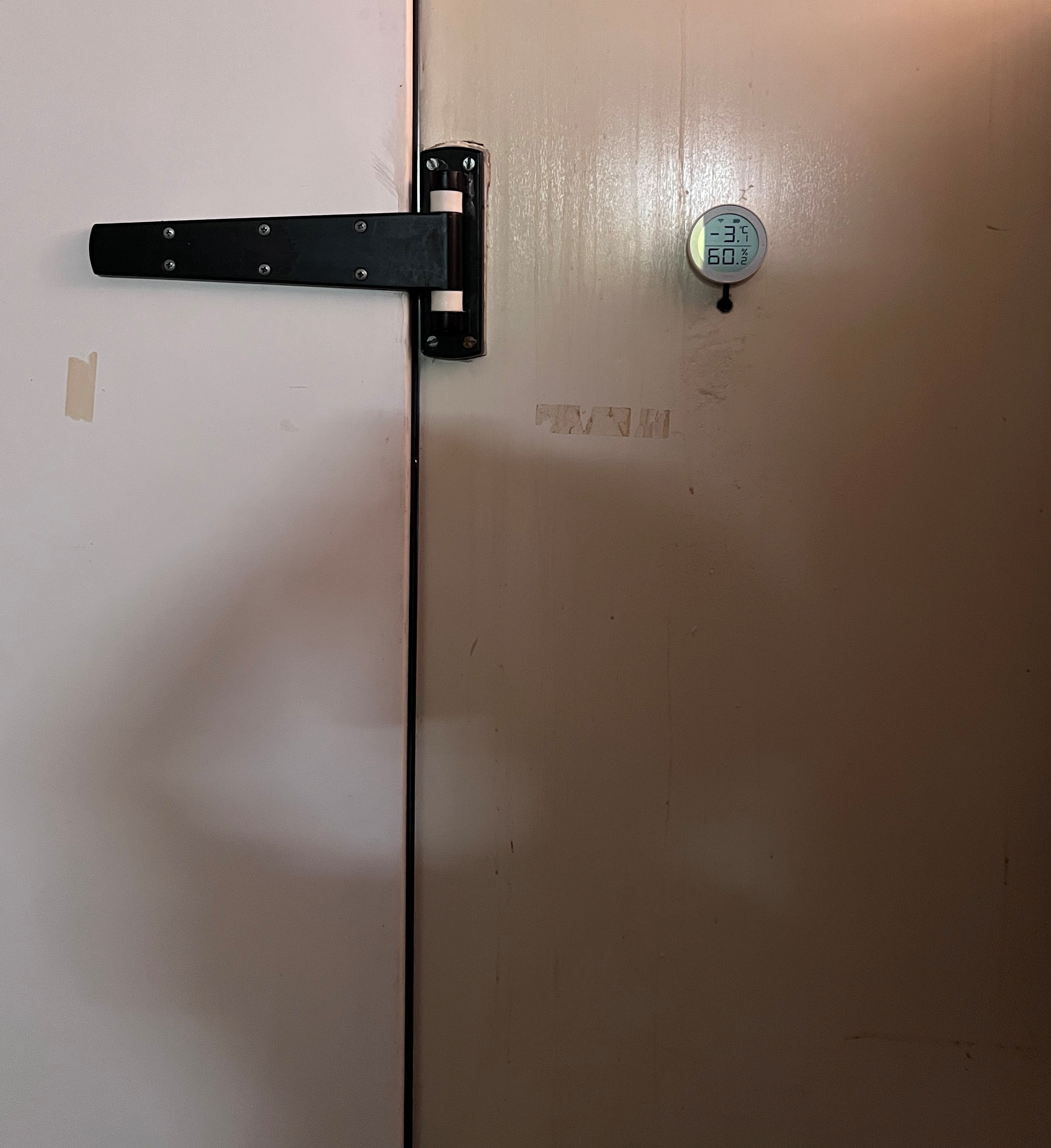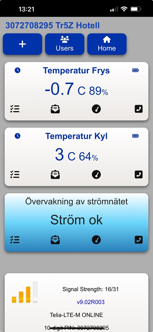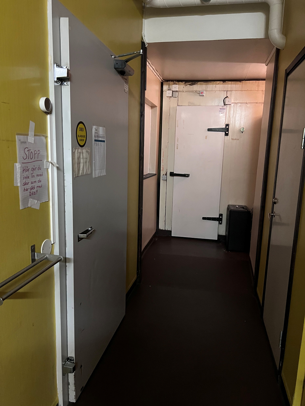 Nå har eieren installert en Hotell pakke for overvåking av fryse og kjølerom. Pakken kommer med to trådløse Zigbee enheter som har et display og en kabel som man stikker inn i fryse og kjølerommet.