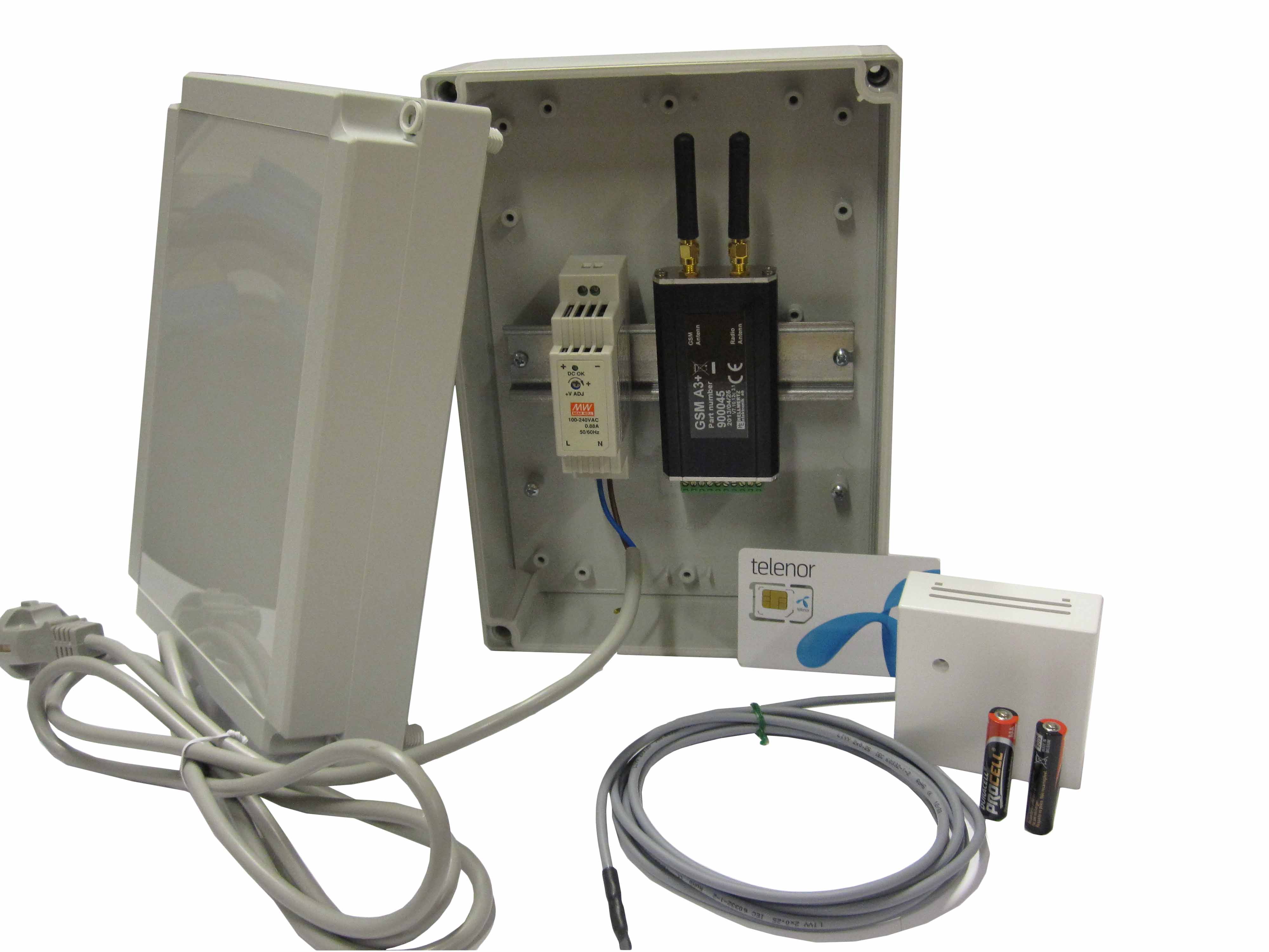 A3+ Temperatur overvåkingspakke kan brukes som en startpakke til et temperatur overvåkingsanlegg. Kan bygges ut til totalt 15 trådløse temperatursensorer og 2 kablede temperatursensorer. Kan også kombineres med brann og innbruddsdetektorer.