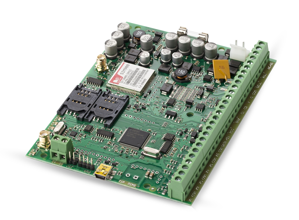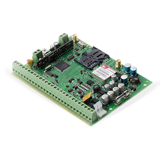 Kan brukes til å sende data til en vaktsentral. Støtter: Ademco Contact ID, EGR100, Kronos, Cortex SMS, SIA IP.