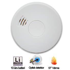 PHX-8231 - Optisk Røykvarsler & Varmedetektor (10 års lithium batteri)