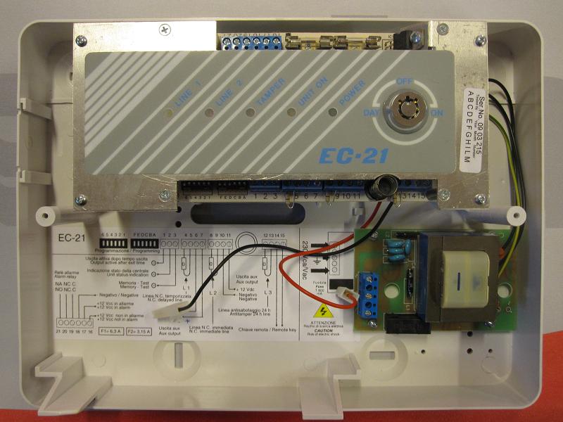 EC 21 passer for mindre installasjoner. EC-21 er en liten, pen, og solid mikroprosessorbasert sentralapparat med en tre-stillingslås i fronten. Sentralen har 3 soner. INN/UT-gangsonen har tidsforsinkelse som kan stilles. Sone 2 er en direktevirkende alarmsone. Sone 1 og 2 har separate terminaler for strømforsyning av detektorer. Sone 3 er en sabotasjesonen som er virksom 24-timer. Sireneutgangen har et kraftig utgangsrele som kan bryte 8 amp. Den har også innbygget sirene. Ladekrets: 400 mA, 13.8 Vdc. Strømforbruk: 10 mA. Følsomheten på sonen: 200 ms.