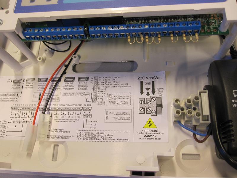 IT-400 er en liten alarmsentral med innbrudd, brann og overfalls funksjoner. 4 innbruddssoner, 3 soner til eget valg. Power, inkl.