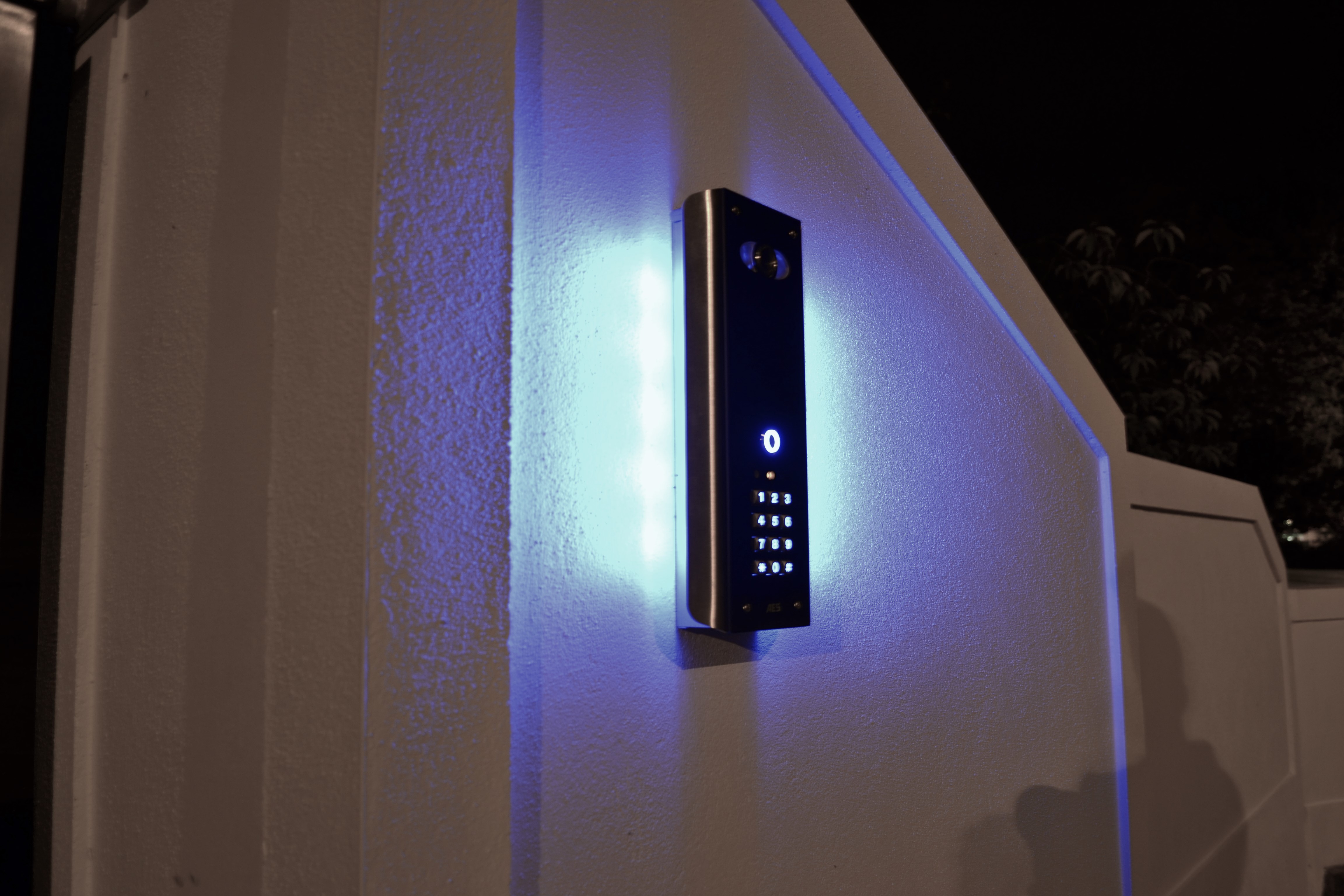 Holars; Easy-Call 3C. Easy-Call 3C, er et gsm-basert videocallingsystem, med direkteknapp for oppring til 3 personer. 3C, er stilig utformet i moderne design, med bakgrunnsbelysning i neonblå farge. Frontpanelet er buet, og utført i rustfritt stål, og tåler tøff behandling under Norske forhold. I tillegg har man kapasitet for 100 brukere, med telefonnummer for direkte styring av dørmiljø.