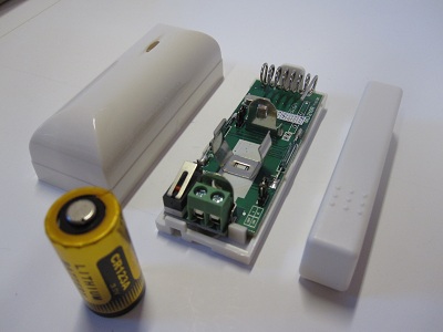 Magnetkontakt til bruk i luker og dører i båt og bobil/campingvogn. Universell trådløs magnetkontakt. Kan brukes venstre/høyre eller for tilkopling av ekstern sløyfe med seriekoblede magnetkontakter eller andre sensorer. Statusrapport hver time. Radio rekkevidde ca. 30 m fri sikt.