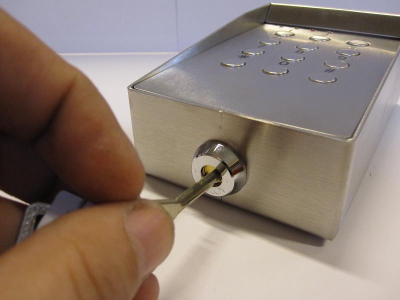 HE-KOD 3 er utført i rustfritt stål. Åpnes med Abloy nøkkel.